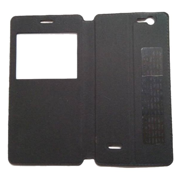 Kožené, flipové ochranné pouzdro pro mobilní telefon Umax P50 LTE s průzorem na display. Pouzdro je černé barvy.