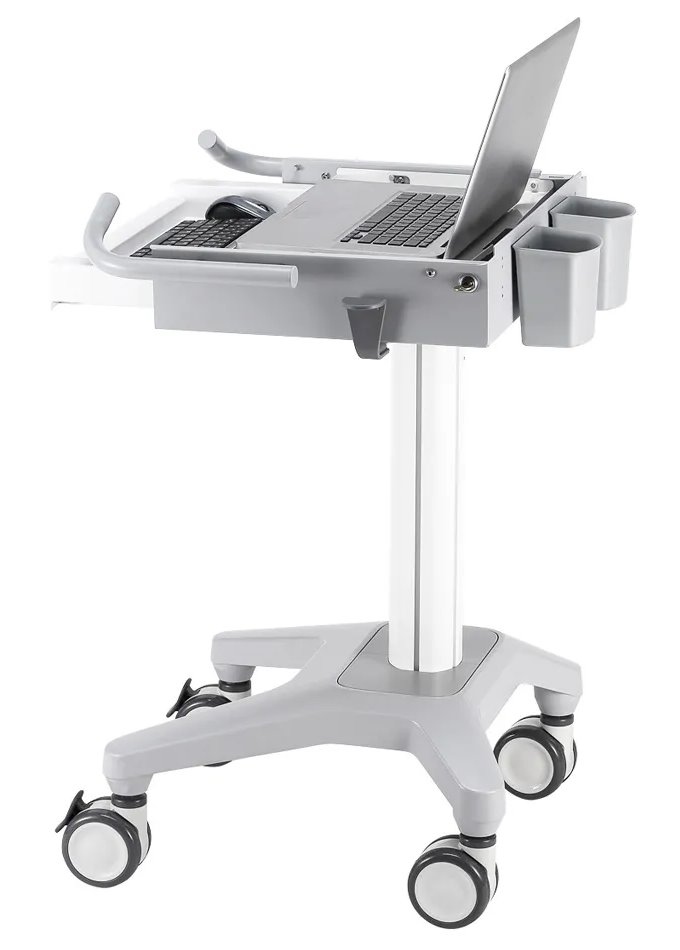 Pojízdný stojan pro notebook s úhlopříčkou od 10" do 17", klávesnici a myš s celkovou hmotností 5 kg. Umožňuje snadné nastavení výšky v rozsahu 83 až 108 cm. K dispozici je také systém pro vedení kabelů. Veškerý instalační materiál je součástí výrobku.