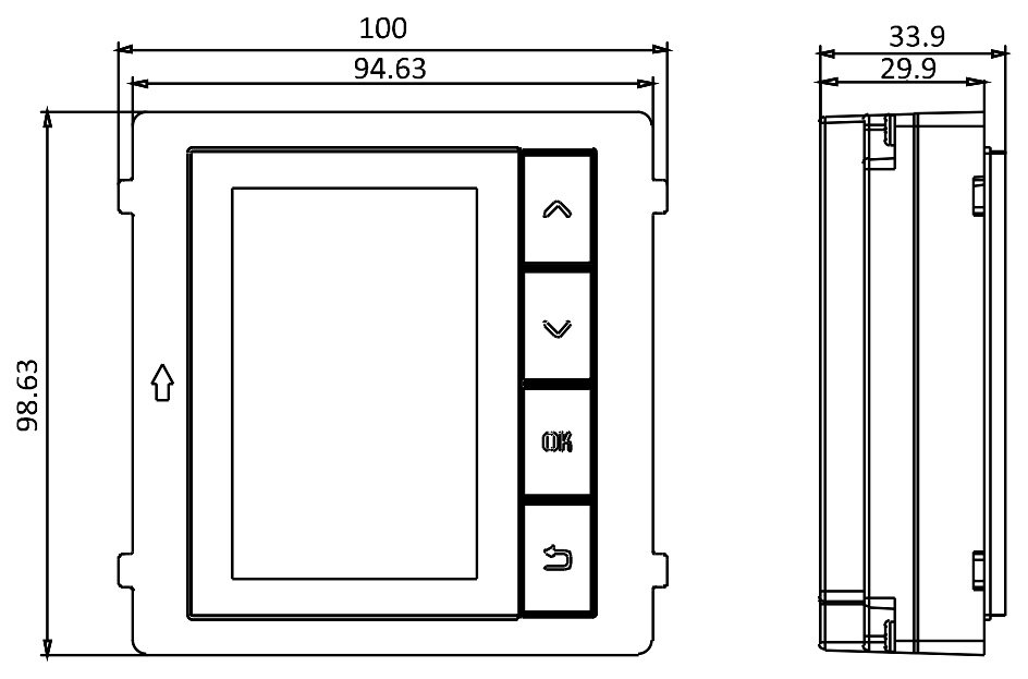 Modul s 3,5" LCD displejem a 4 podsvícenými tlačítky umožňuje volat vnitřní stanice ze seznamu uložených kontaktů.