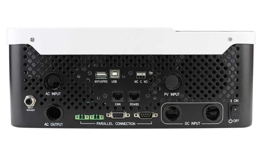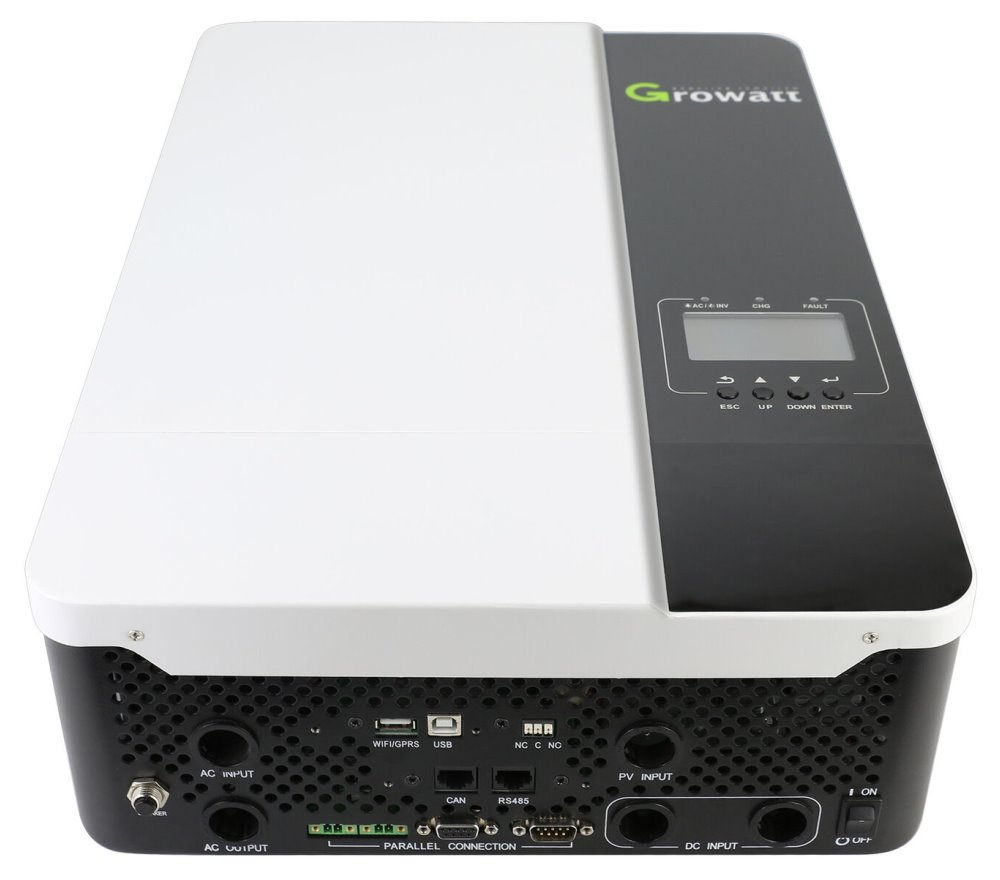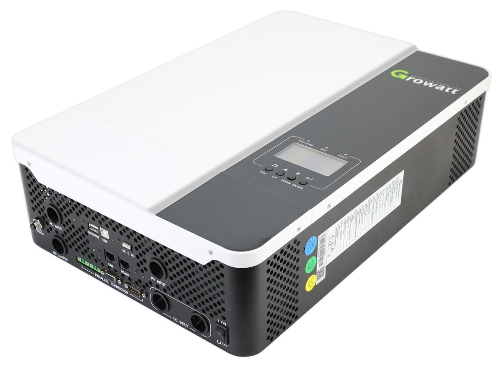 Měnič Growatt SPF 3500 ES je optimální volbou pro tzv. ostrovní systémy bez dostupné distribuční sítě – k jednotce může být připojena elektrocentrála a/nebo baterie jako záložní zdroj energie. Jedná se o hybridní měnič se sinusovým výstupem ideální pro domácí a malé komerční systémy. Vestavěný MPPT regulátor zvládne až 4,5 kW FV pole s maximálním napětím na prázdno 450 Voc. Umí pracovat jak s olověnými, tak i Li-ion akumulátory. Samozřejmostí jsou porty RJ-45 pro CAN/RS-485 komunikaci s BMS modulovými akumulátory LiFePO4 značek např. Pylontech, WECO, Seplos atd.