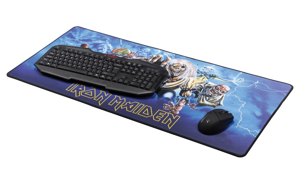 Velká podložka pod myš pro fanoušky kapely Iron Maiden. S přilnavým gumovým podkladem je podložka bezpečně přichycena ke stolu, kde zůstává za všech okolností.