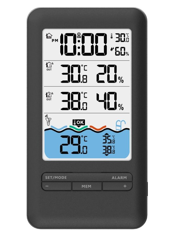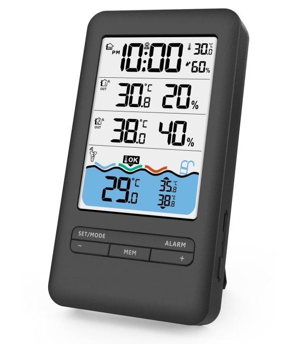 • Senzory pro měření teploty a vlhkosti vzduchu v bazénu i interiéru, budík nebo zobrazení data a času rozšiřují jejich využití.