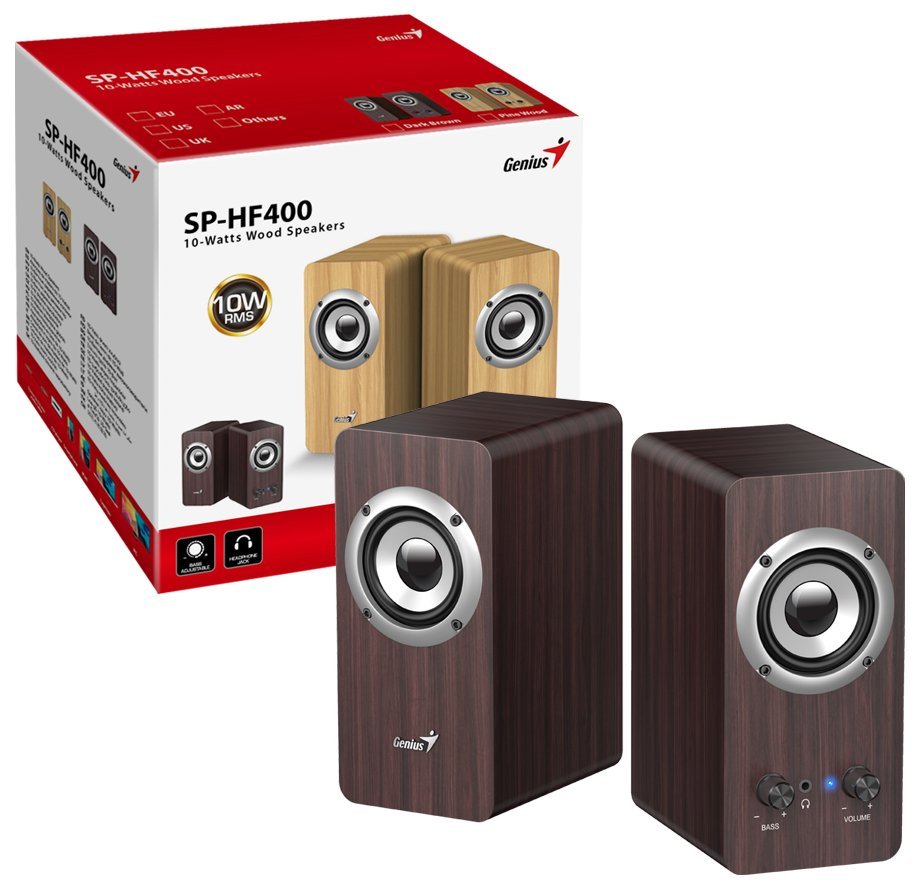 Reproduktory Genius SP-HF400 v dřevěném provedení jsou ideální volbou pro poslech hudby z počítače, tabletu, mobilního telefonu nebo MP3 přehrávače. Díky 2,5" širokopásmovým měničům poskytují čistý stereo zvuk s výraznými basy, který potěší i náročnější posluchače.