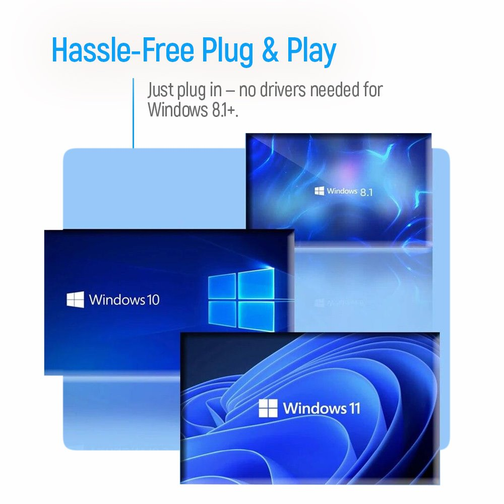 Adaptér vyniká zpětnou kompatibilitou s verzemi Bluetooth 2.0 až 5.2, takže funguje se zařízeními všech generací. Díky funkci Plug & Play pro Windows 8.1 a novější není potřeba instalovat žádné ovladače.
