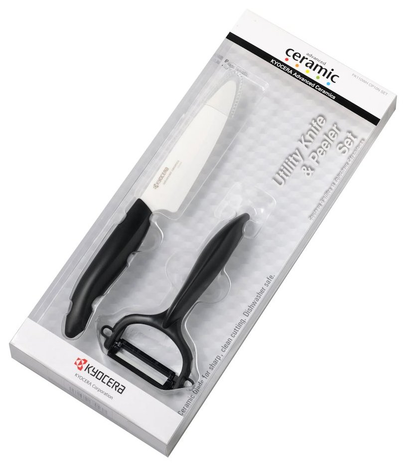 Základní sada značky Kyocera se skládá z univerzálního keramického nože a škrabky v černé barvě. S praktickými kuchyňskými pomocníky lze jídlo připravit rychle a snadno. Jsou ideálními pomůckami pro loupání, strouhání a krájení a jsou nepostradatelné v každé moderní kuchyni.